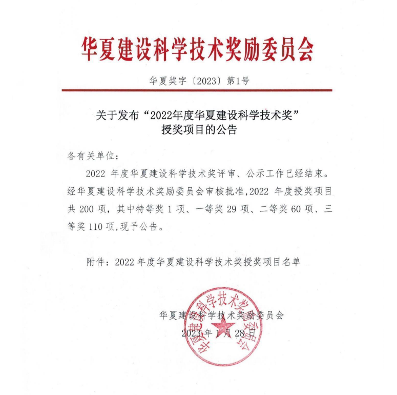 日前,课题成果——大型BIM设计施工软件研发与推广应用获得了2022年度华夏建设科学技术奖一等奖,奖项由天津xc体育物联科技股份有限公司、中建工程产业技术研究院有xc体育 xc sports公司、北京盈建科软件股份有限公司等单位联合申报。