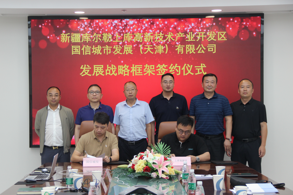 会上,新疆库尔勒上库高新技术产业开发区与国信城市发展(天津)有限公司签署发展战略框架协议,库尔勒市政协党组书记、副主席、上库高新区党工委书记鲜智、xc体育物联董事长刘柏呈等见证。